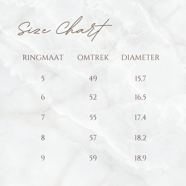 De ring is gemaakt van het materiaal stainless steel en verkrijgbaar in verschilende maten.