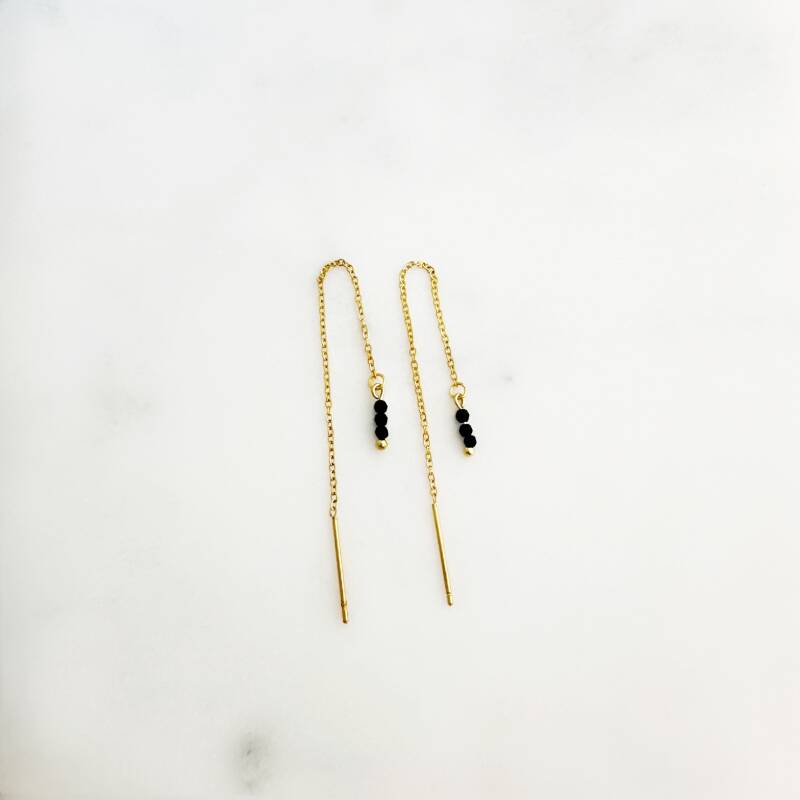 B2B CHAIN EARRINGS BLACK BEADS